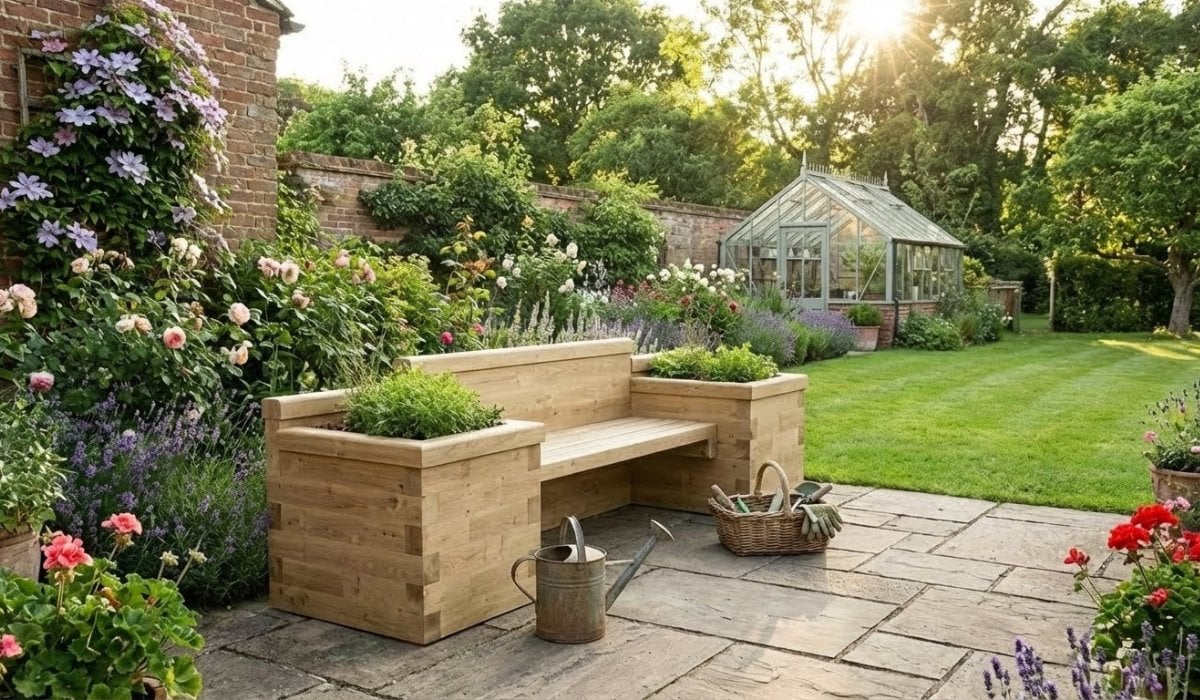 This L-shaped planter bench is perfect to add seating to corners of the garden that need enhancing or as a way to divide up a large space.