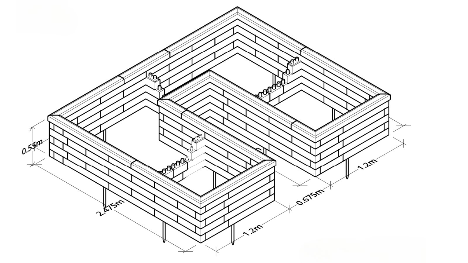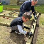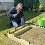 Once the ground was level, the first layer of WoodBlocX was built. As the planter was being built on soft ground, Colin and Alison used ground spikes to secure the planter in place. WoodBlocX can be built on any surface, we offer angle brackets to secure our kits to hard ground types such as concrete, paving and patios.
