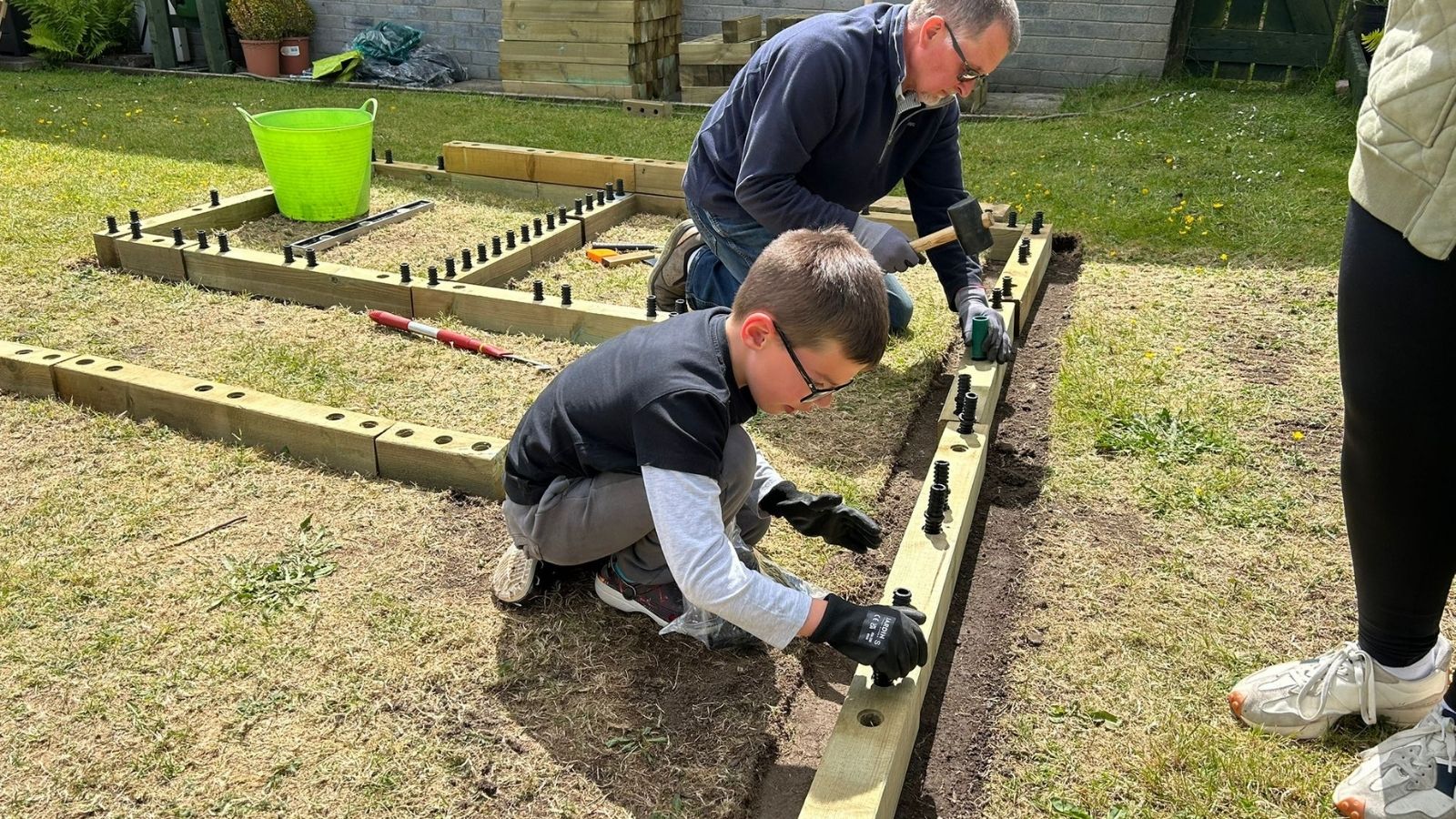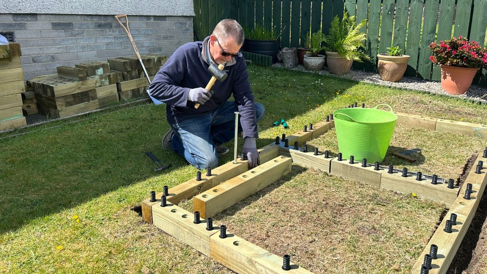 To start, Colin and Alison mapped out where they would like the kitchen garden to be situated. Once they were happy with the position, they meticulously removed the turf from the garden to create the perfect base of the WoodBlocX to sit on. It is very important to ensure that the ground is completely level before beginning the build, this can be achieved by using products such as sand to level the ground.