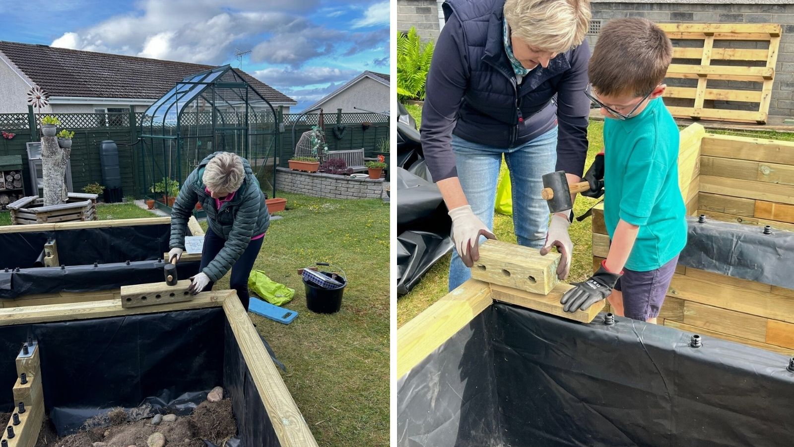 Colin and Alison, with the help of their grandson, followed the step-by-step instructions until all layers were complete. WoodBlocX is a great activity to involve the whole family. Before adding the final capping layer, they secured a raised bed liner in place. The liner gives extra protection and provides a barrier between the timber and soil, helping to ensure the lifespan of the raised bed. Once the final capping layer was added, Colin and Alison filled the bed with soil and began planting an array of vegetables.