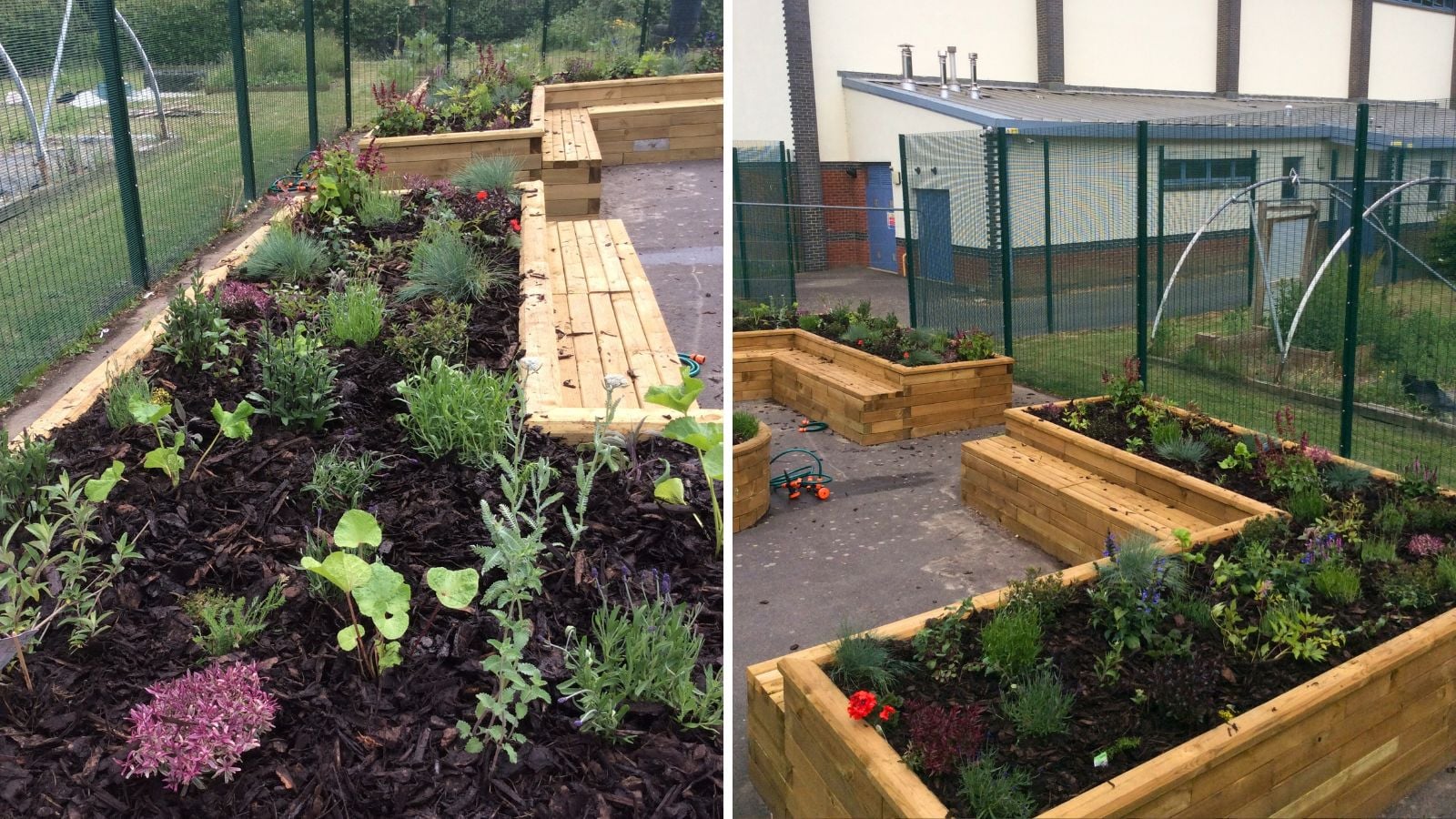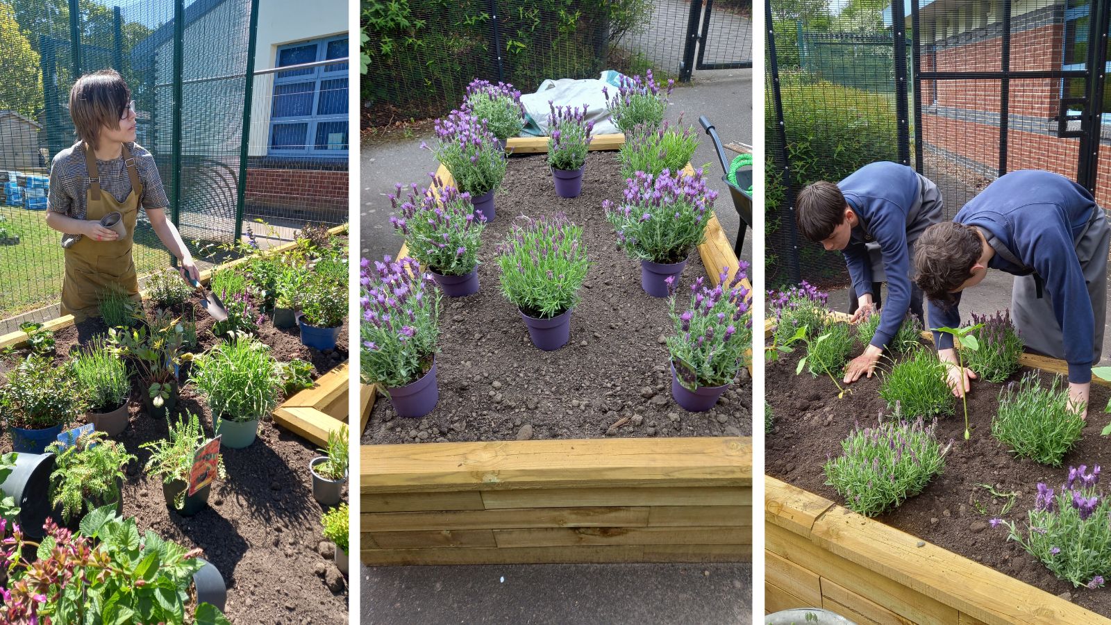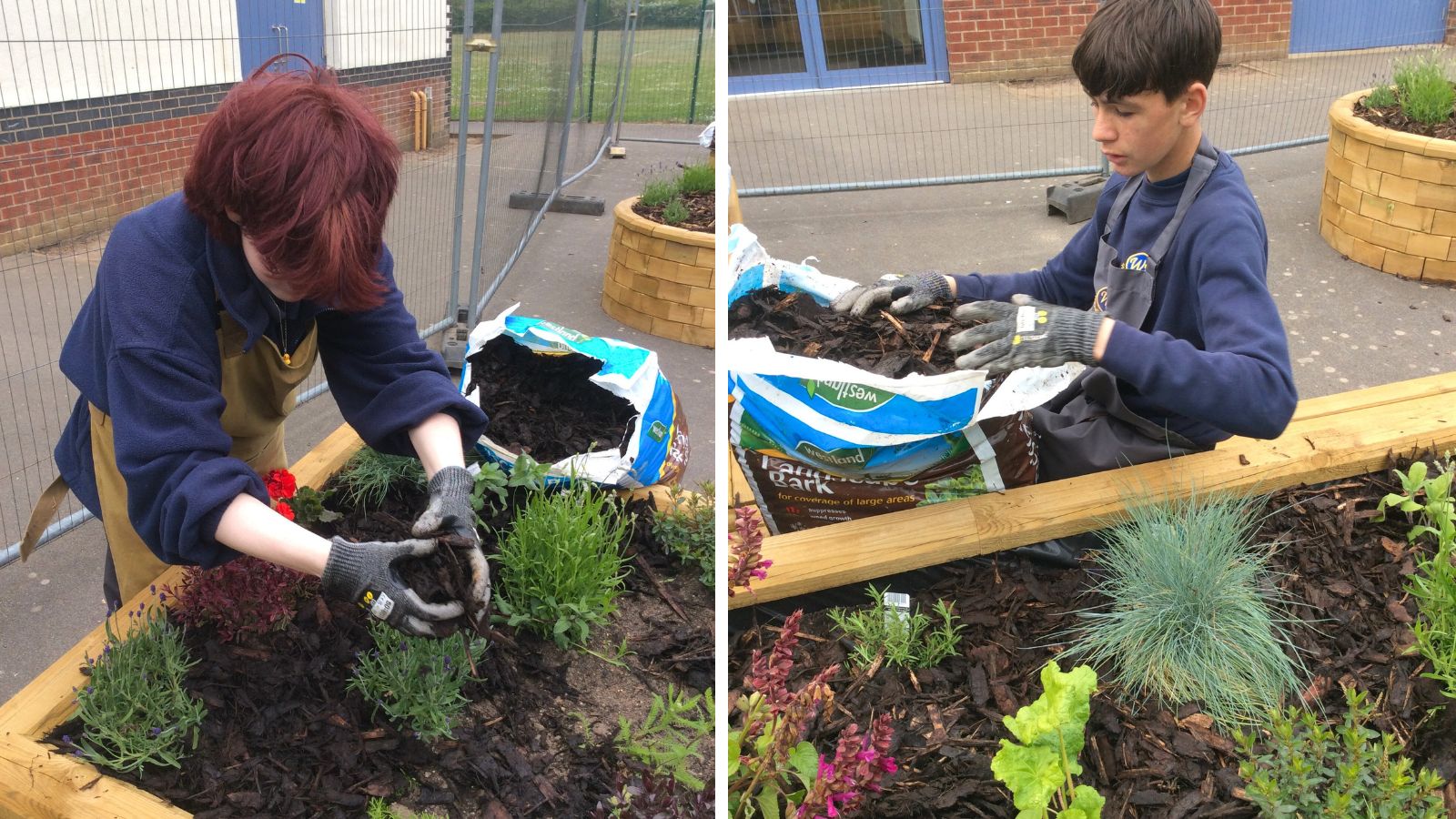 Finally, soil was added to fill the raised beds, the pupils then planted a variety of flowers and shrubs before adding a layer of bark to finish.