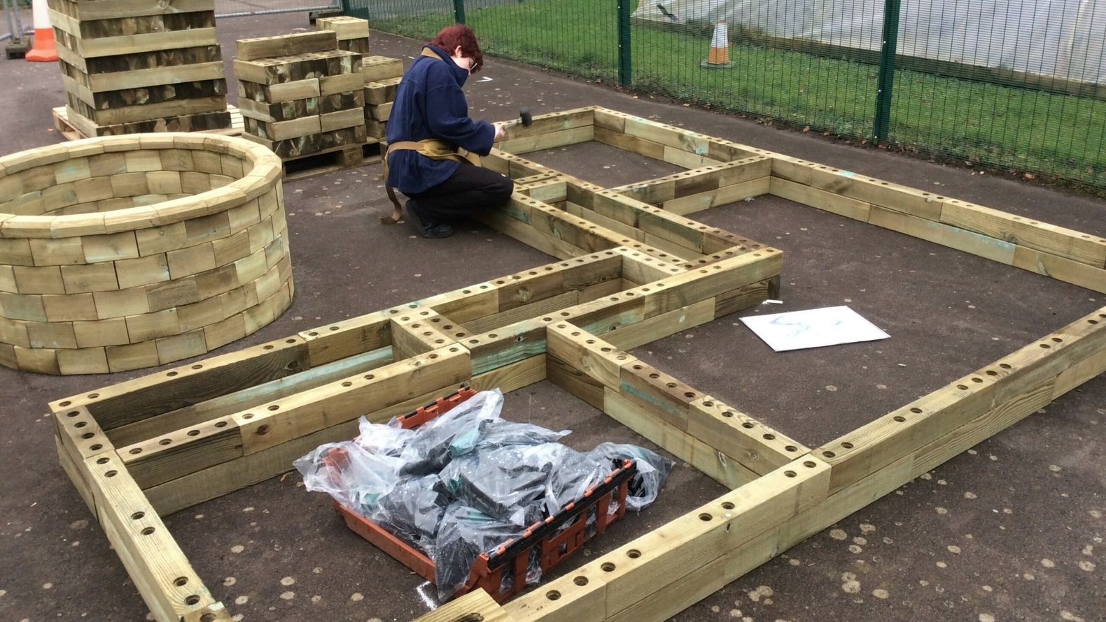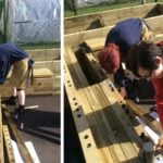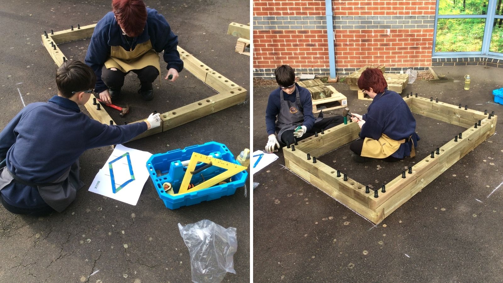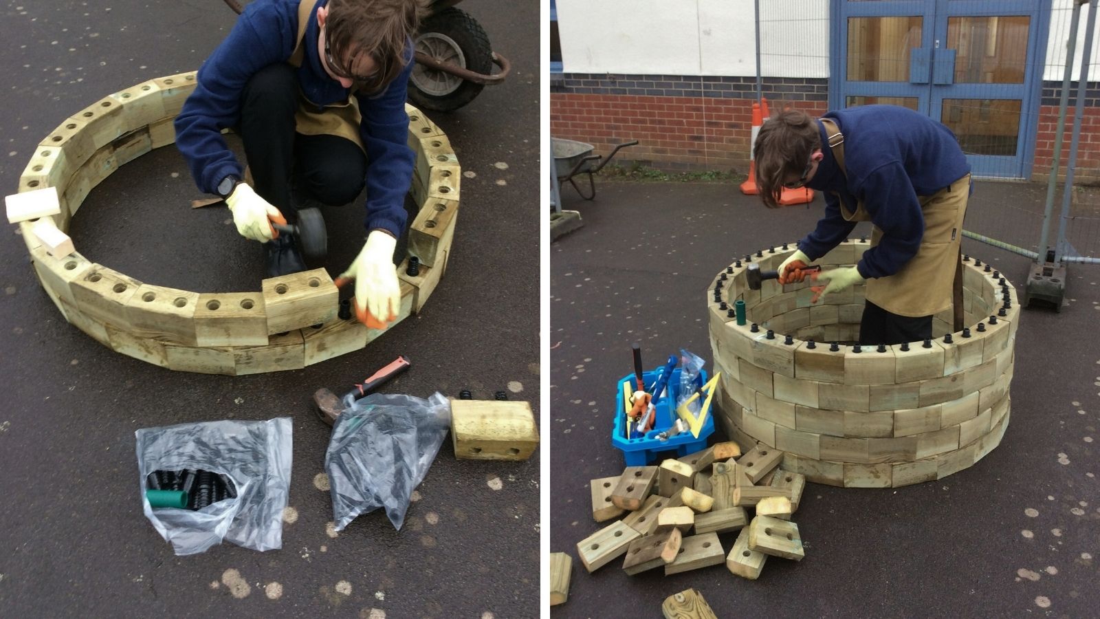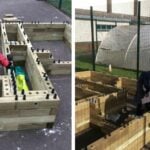 Once the area was measured out, the pupils began building each planter, layer-by-layer, using our easy to follow instructions. The pupils secured each layer with dowels before adding a protective liner to protect the timber prior to the final capping layer being secured into place. Traditional capping was used in this project to add the finishing touches – see our capping options.