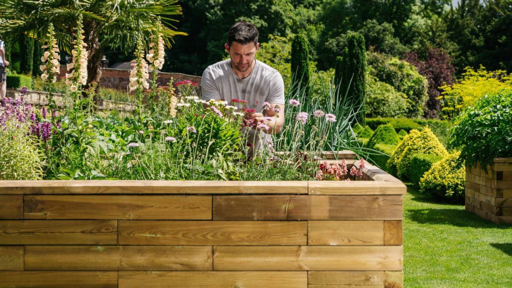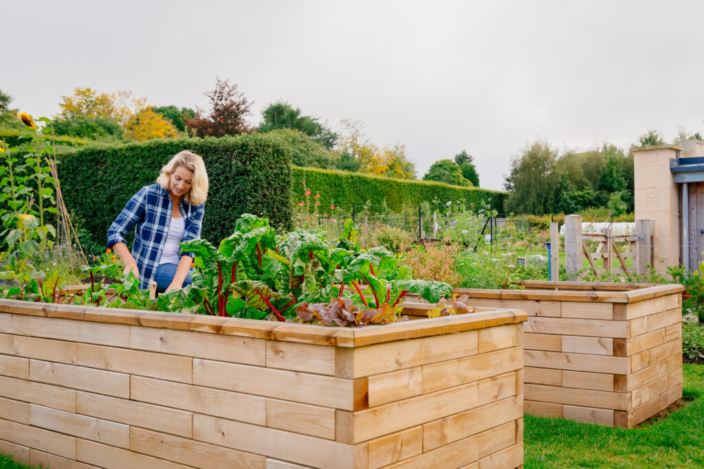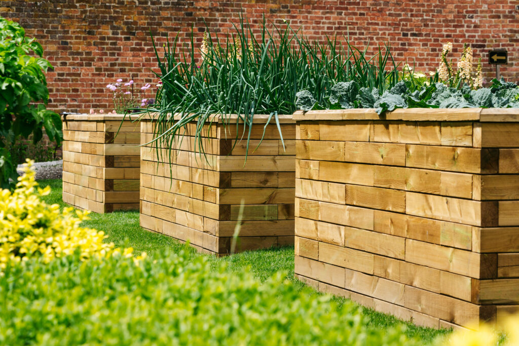 Raised beds provide larger growing areas for vegetables, herbs, and cut flowers. Planters are smaller and easy to position for instant impact.