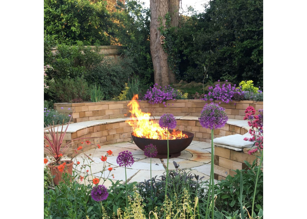 This circular planter bench was designed with the intent of creating a relaxing outdoor seating space with its focus on a fire pit in the centre. Raised planting space to the rear of the seats not only acts as a back rest but creates spacious planting space for some tall grasses or bushy shrubs which can offer good privacy.