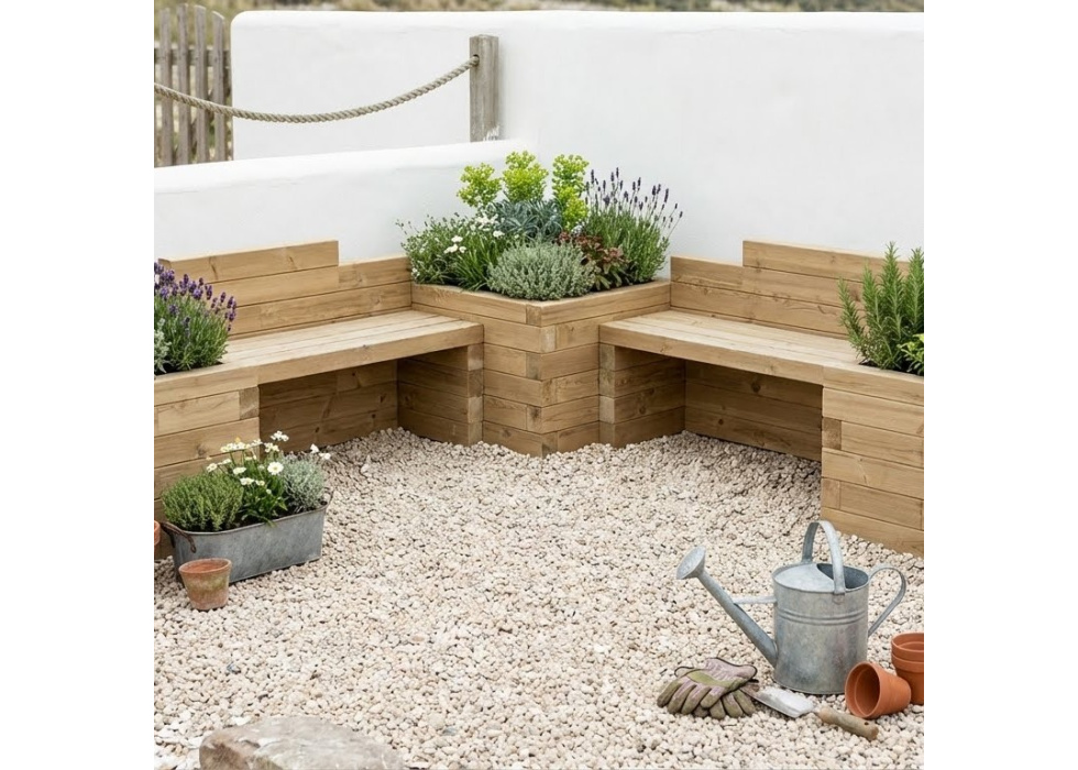 This corner wooden planter bench design is great for filling in that gap in your garden. Using WoodBlocX is easy as there is no heavy lifting, screwing or drilling, which means everyone has the potential to build one themselves. Bench seat height - 0.45m