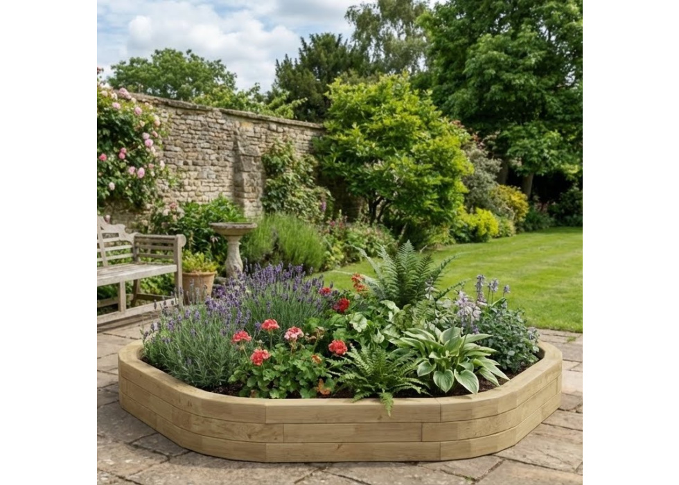 Low Hexagonal Wooden Tree Edging Kit 2.42 x 2.25 x 0.25m