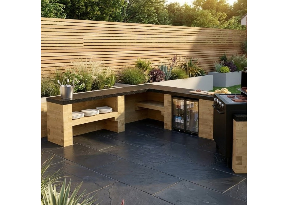 Creating an outdoor kitchen has never been easier! With space for a full-size BBQ and beer fridge, this modular kitchen kit has it all. All you need to do is build it and complete the kitchen with your choice of countertop.