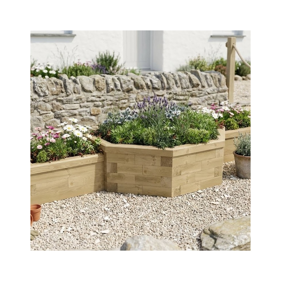 A feature planter with two side attractions, this dynamic wooden flower bed can be used for floral displays or as a kitchen garden. The multi-tier design (0.45m / 0.35m) looks great against a garden wall or alongside a path or house. Fun and quick to build, this raised bed kit is a great way to add some interest to your outdoor space... all you need is a lump hammer!