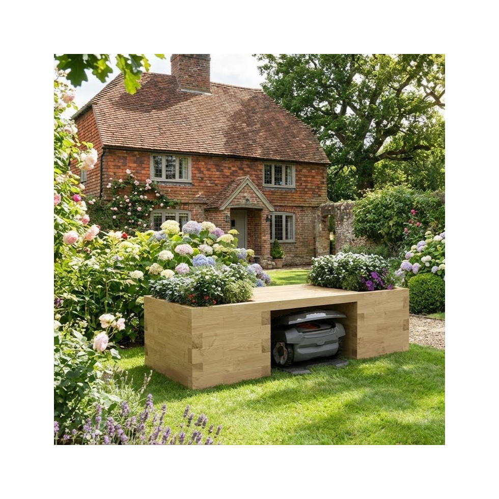 Robot Lawn Mower Garage with Planter Bench / 2.025 x 0.9 x 0.55m